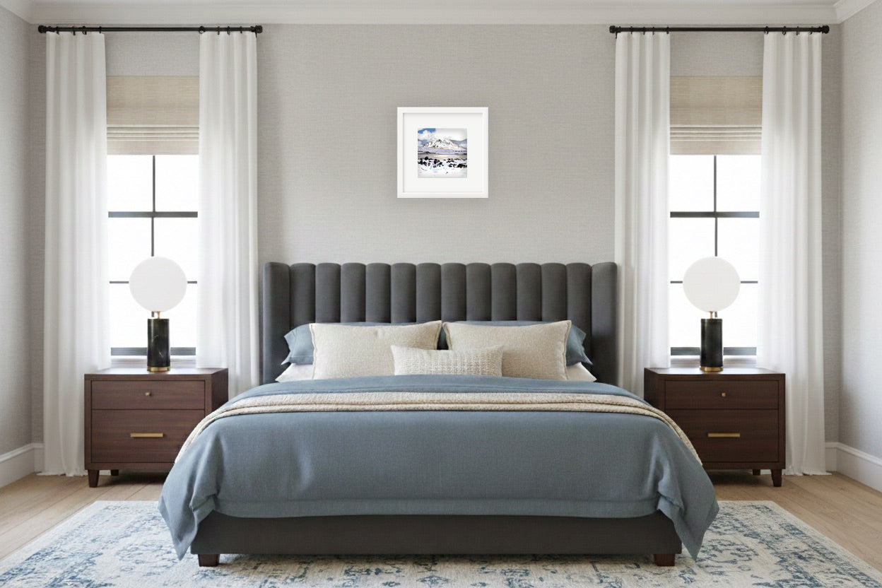 A hush settles over the landscape. Icy blues and soft lavenders dissolve into white, while faint blushes of pink and amber glint like diamond dust, light caught in frozen air.
